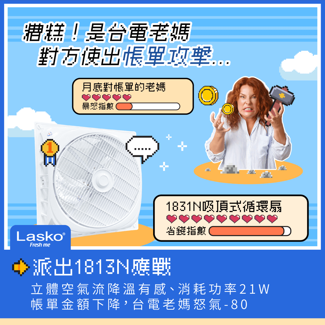 夏天到,電費總是暴漲?! 地表最強循環扇 1831N登場ʕु•̫͡•ʔु 獲台灣節能標章 認證,消耗功率僅21W⚡